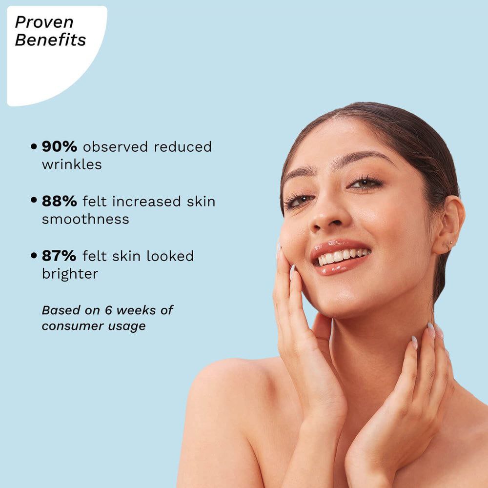 Hyaluronic Acid acts as an excellent humectant that draws and binds moisture to the skin and prevents signs of ageing like fine lines and wrinkles